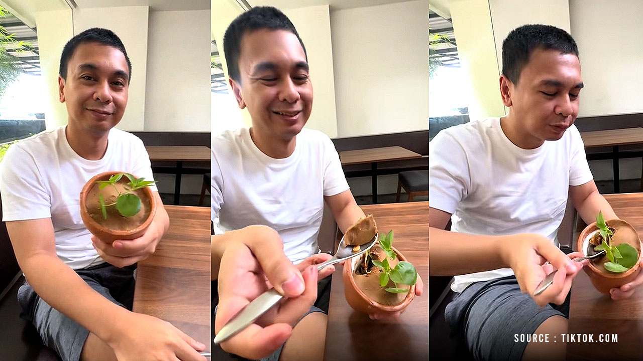 Penampilannya benar-benar mirip seperti pot yang terbuat dari tanah liat dan ditanami tumbuhan hijau. Untuk menyantapnya, Raditya Dika harus menyerok bagian atas yang mirip seperti tanah. Setelah di sendok, barulah terlihat campuran sayuran (kacang panjang, tauge, kol dan lainnya) serta telur dan bumbu kacang khas gado-gado pada umumnya. Raditya Dika, lantas menyantapnya dengan lahap dan sangat menikmatinya.