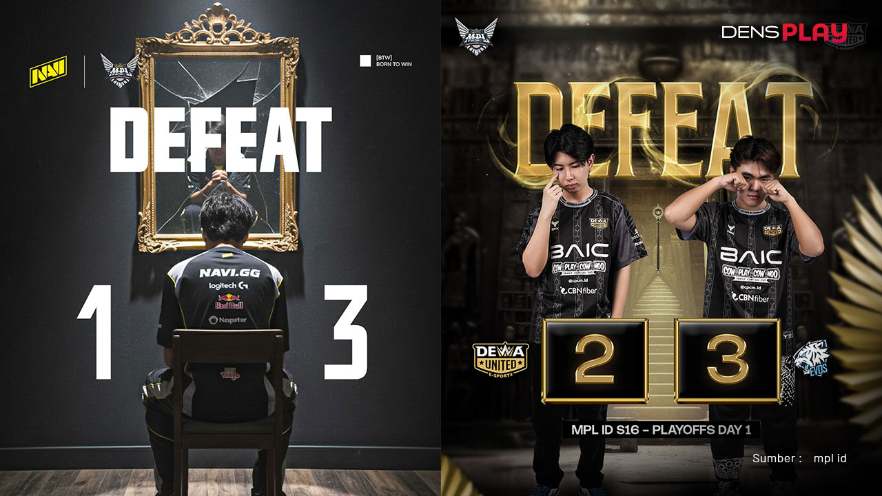 Hari pertama Playoffs MPL ID S16 langsung diwarnai kesedihan bagi dua tim favorit, Natus Vincere (NAVI) dan Dewa United Esports. Mereka mengakhiri perjalanan lebih awal di Playoffs MPL ID S16 setelah gagal melangkah ke babak berikutnya. Kedua tim sama-sama tumbang di laga pertama Playoffs setelah kalah dalam duel NAVI melawan Alter Ego dan Dewa United melawan EVOS.